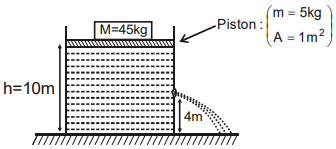 The cylindrical vessel is kept on a horizontal surface as shown in the figure. The speed of water coming out through a small hole:-